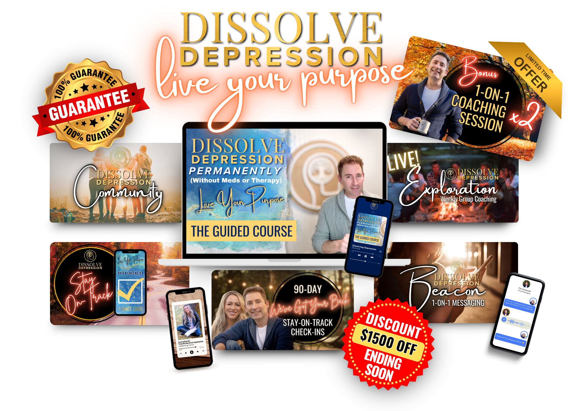 - Dissolve Depression Permanently - Complete 33-Hour Video Course (Lifetime Access!): Provides a comprehensive map of clear, concise, understanding—including the 4-Step Process for Dissolving Depression Permanently.